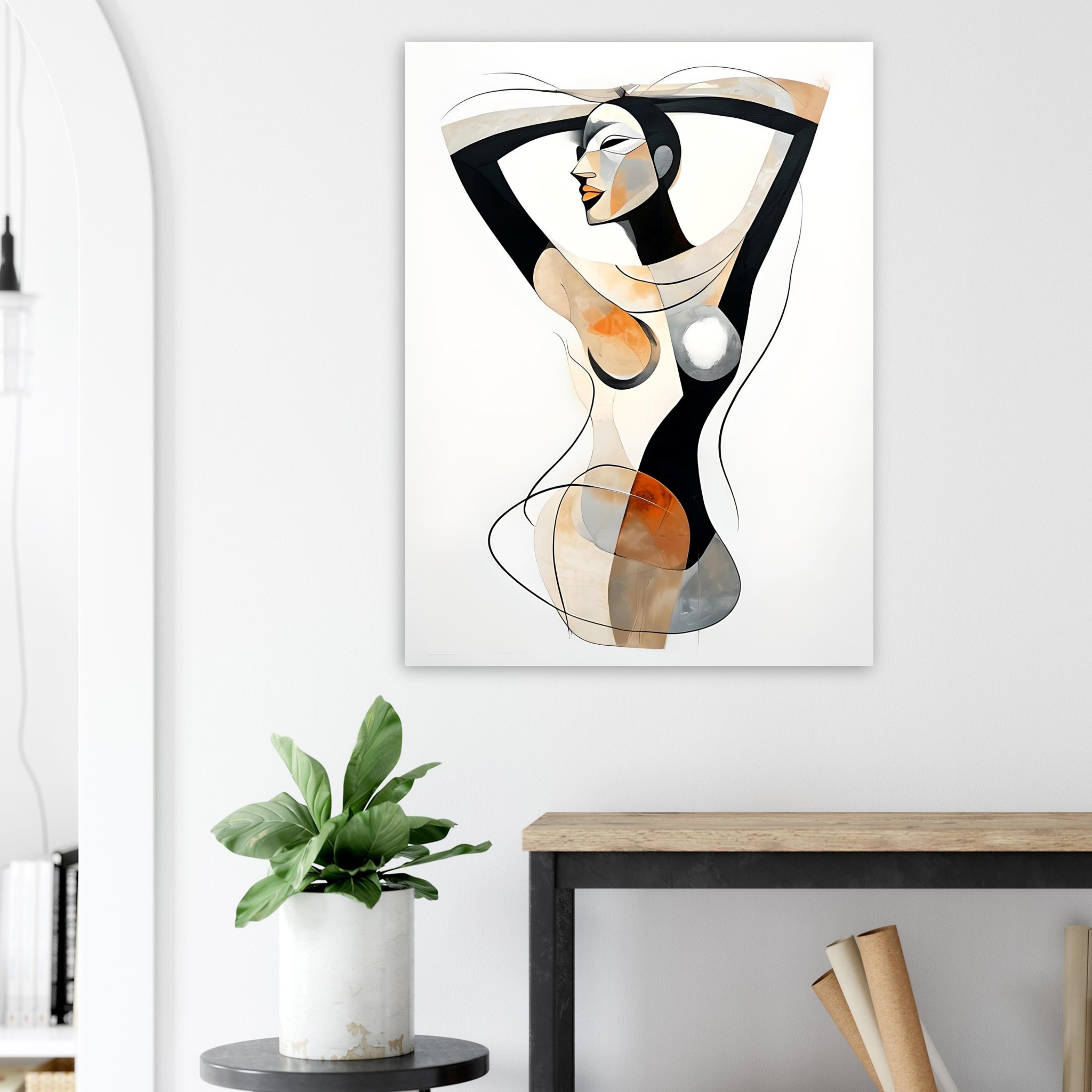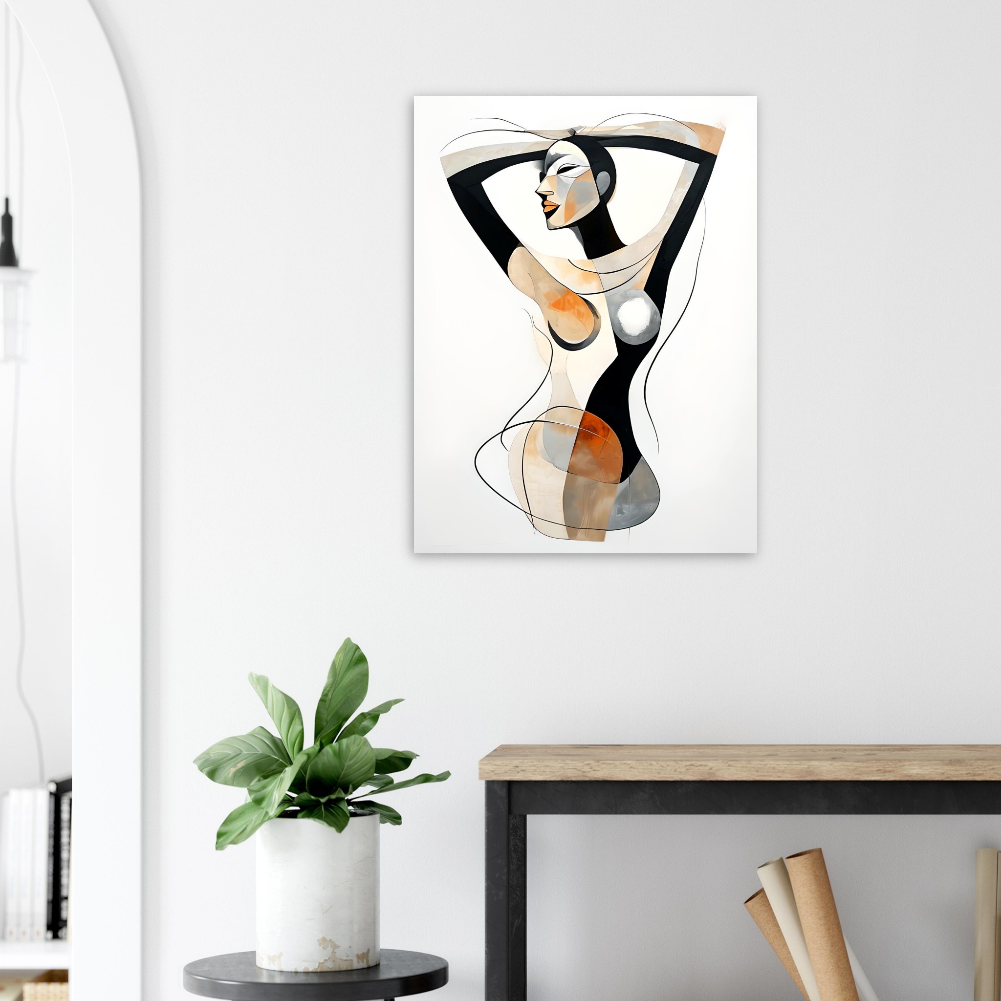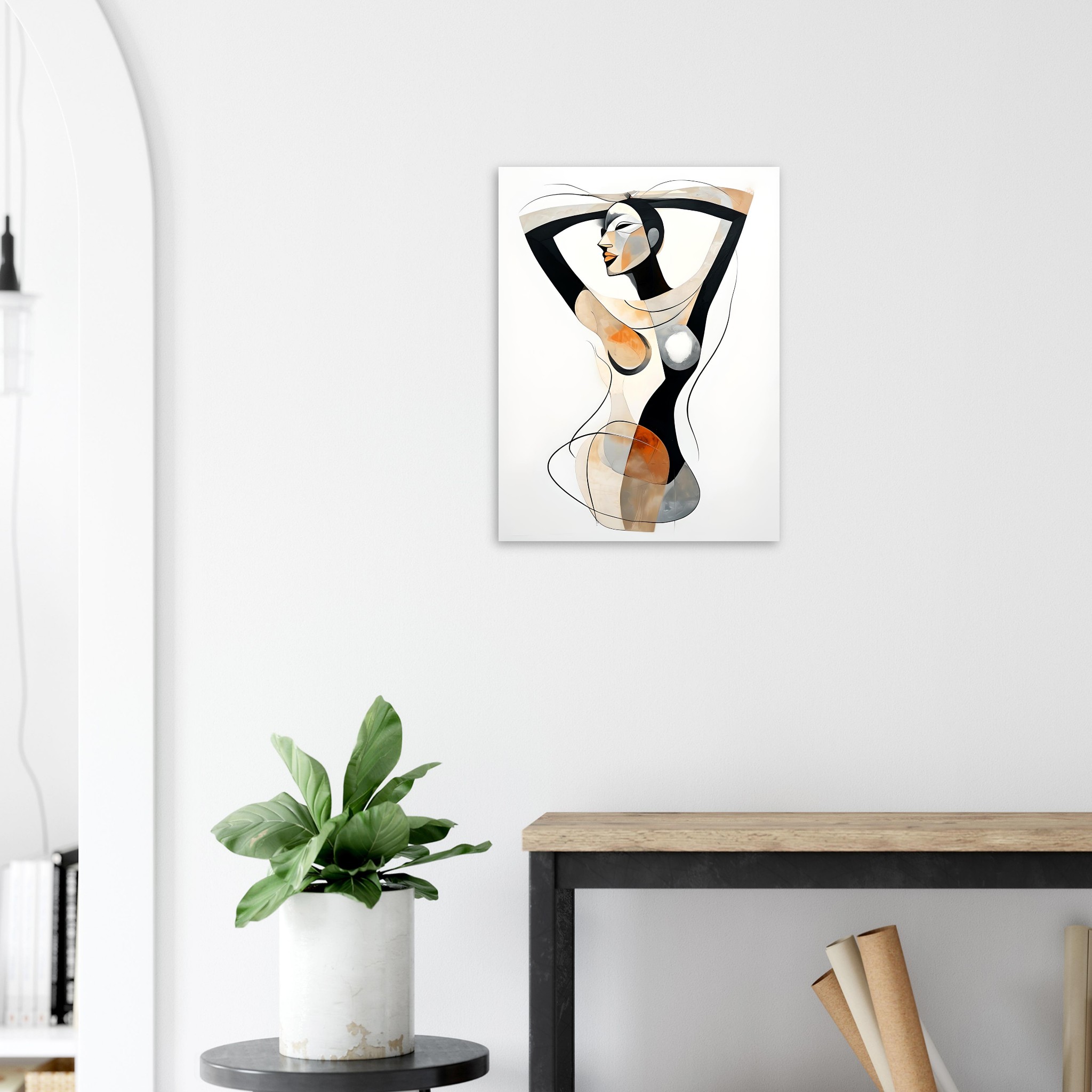 The overall effect is calm, modern, and contemplative. The format and minimal background allow the figure to remain the sole focus, making the piece well suited to contemporary interiors that favour elegance, simplicity, and refined abstraction.