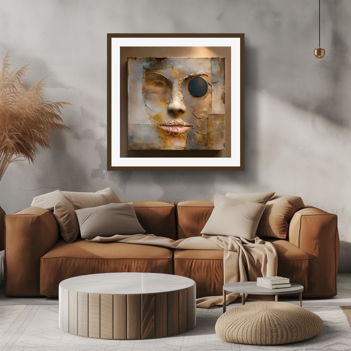 The work embodies a fusion of abstraction and texture, exploring the complexities of human expression through a modern lens. Utilizing a diverse palette of muted tones and metallic accents, the Terry James creates a dialogue between depth and surface, inviting viewers to engage in contemplation.
