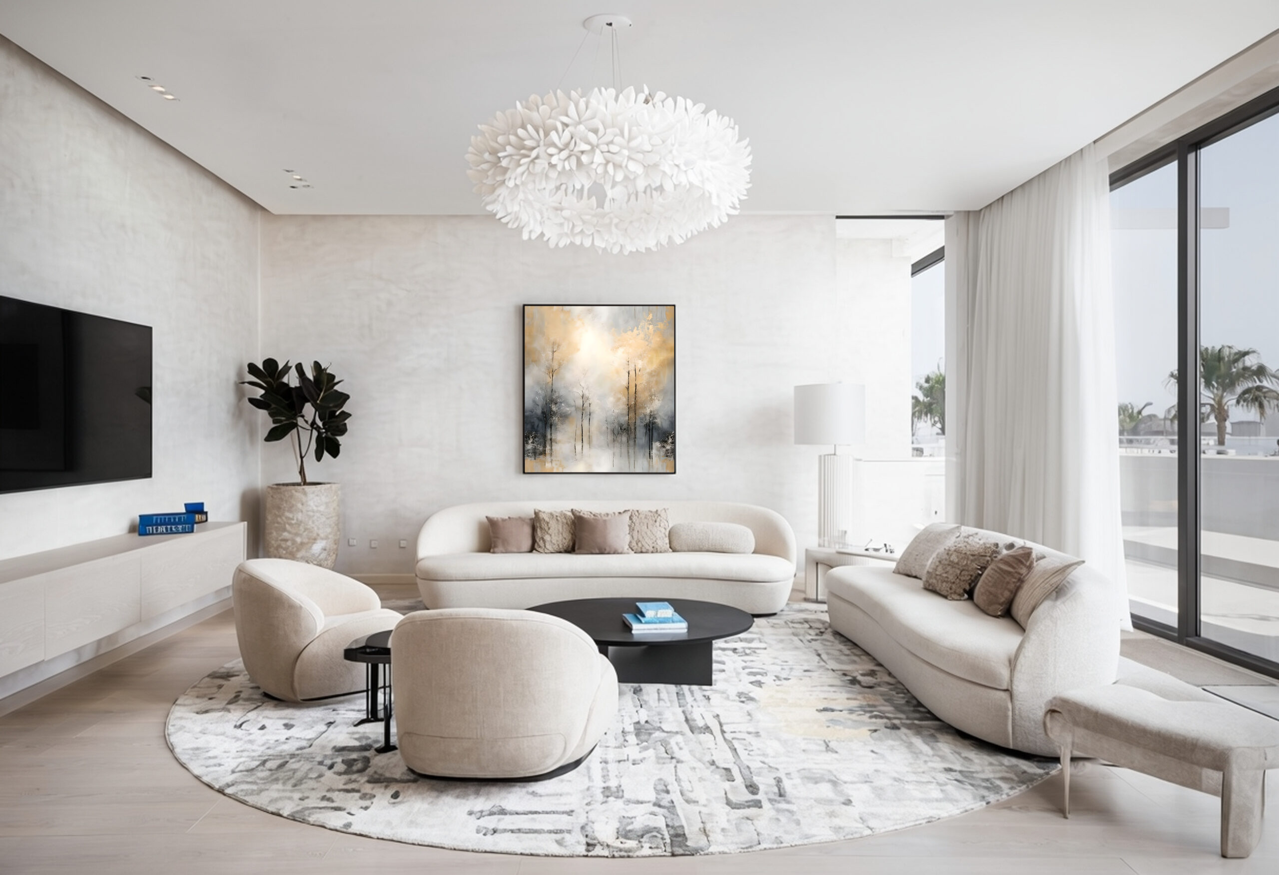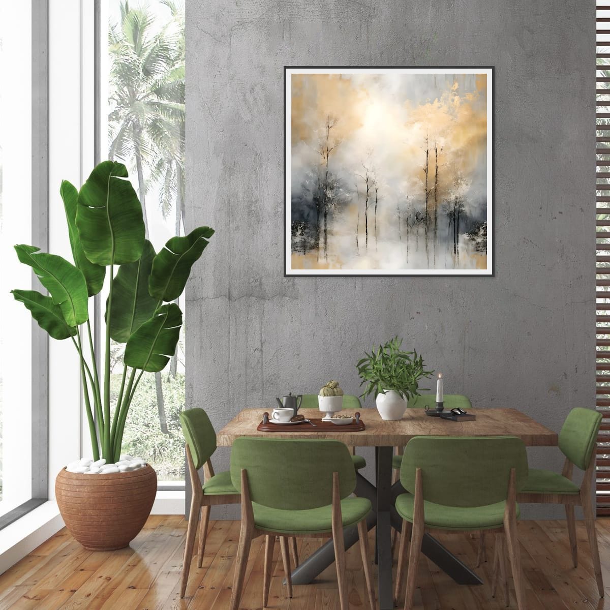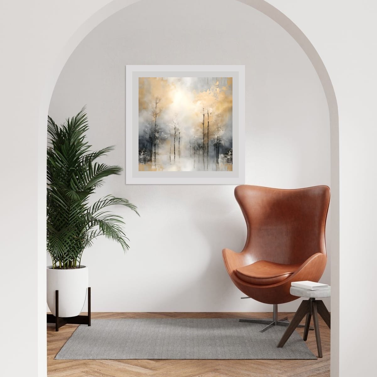 Light is treated as an opening rather than a source. The central brightness does not illuminate; it clears. It creates room for stillness, allowing the surrounding forms to settle without direction or narrative. The atmosphere feels suspended, neither advancing nor receding.